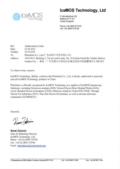 2023年9月,PlutoChip获得IceMOS分销授权。